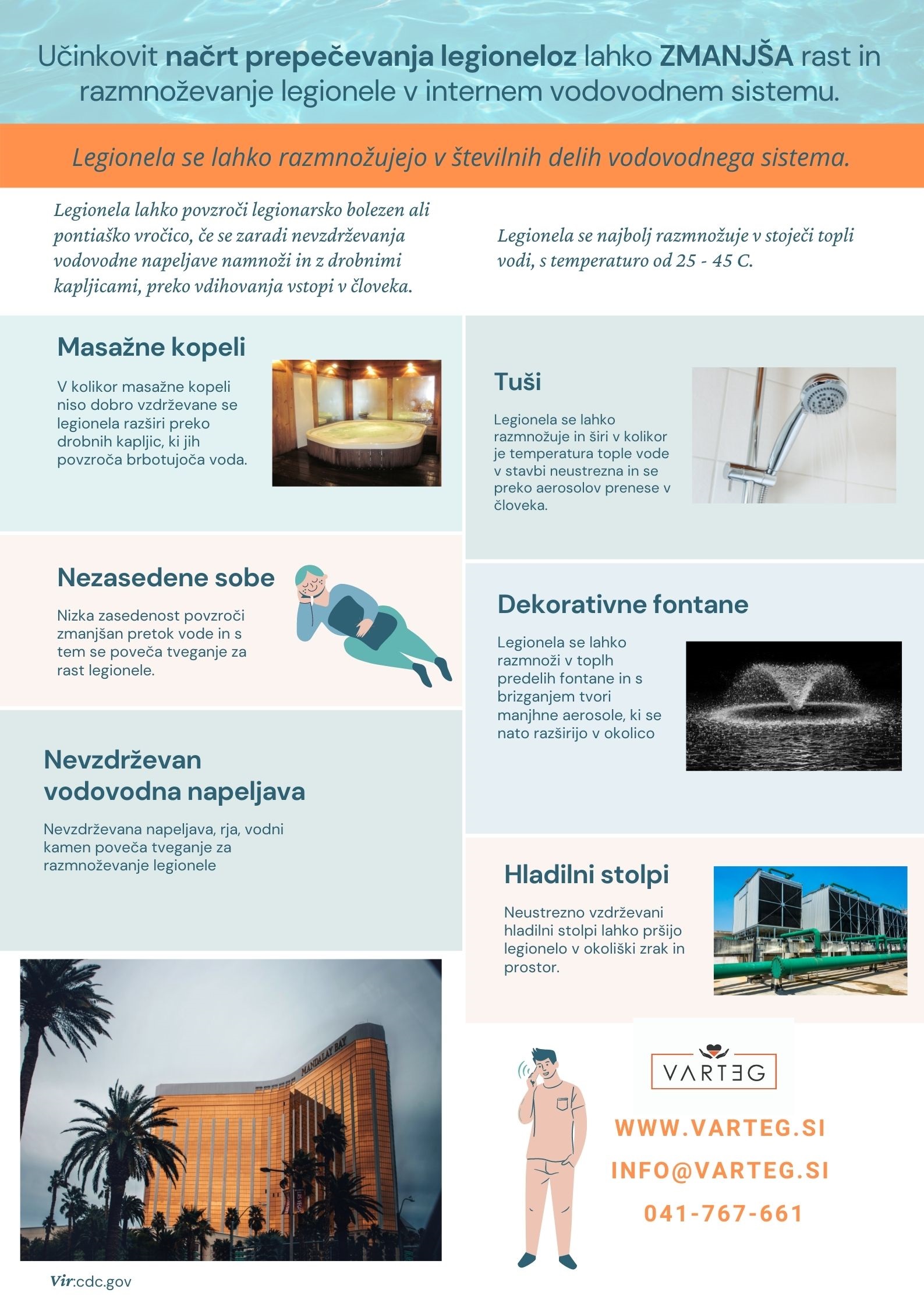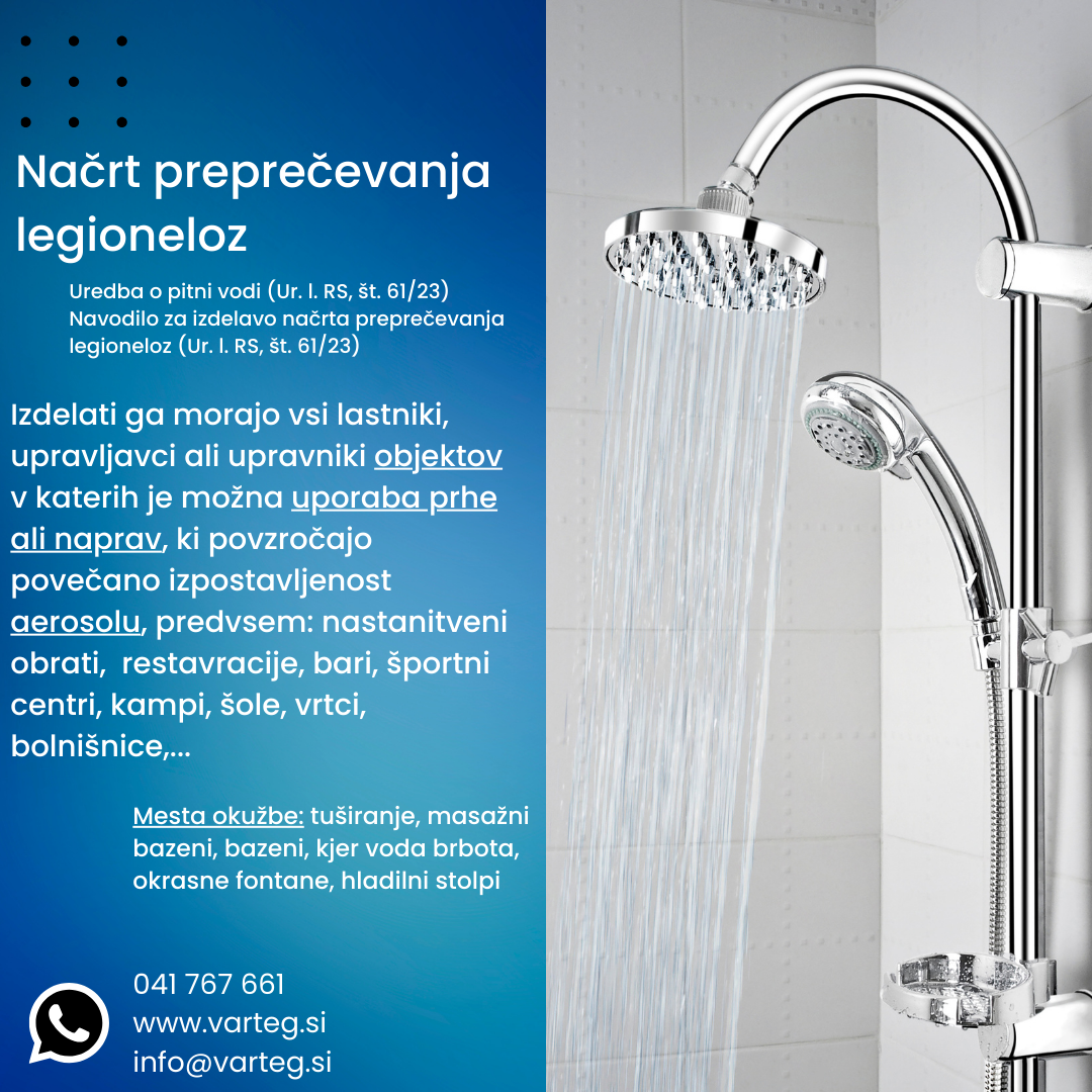 V letu 2023 je bila v Uradnem listu objavljena Uredba o pitni vodi (Ur. l. RS, št. 61/23), ki nalaga vsem lastnikom oziroma upravljavcem ali upravnikom prednostnih prostorov pripravo Načrta preprečevanja legioneloz.